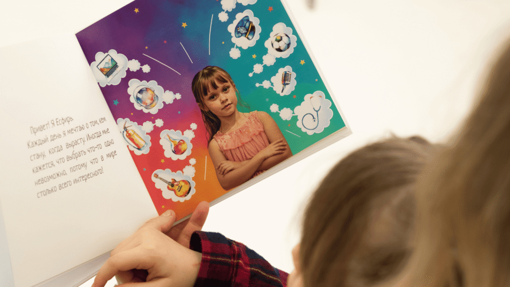Премиальное оформление в сочетании с личной историей создает эффект «избранности». Ребенок понимает: эта качественная, красивая вещь создана специально для меня. Это мощный инструмент для повышения самооценки и мотивации к чтению. Если книга «обо мне» сделана на высшем уровне, значит, и я, и мои знания — это нечто очень важное.