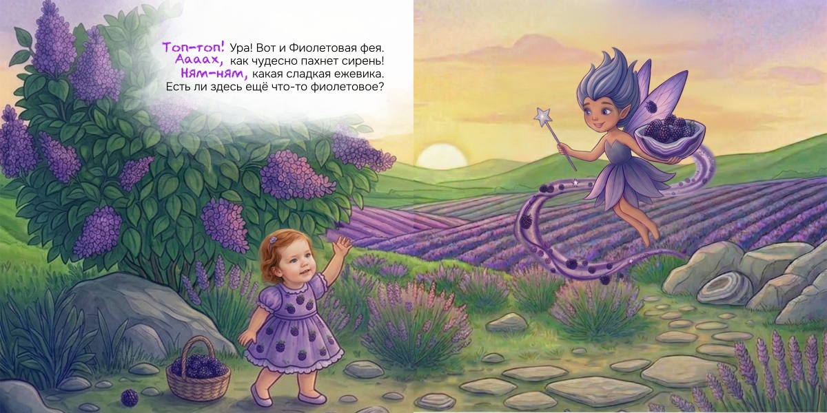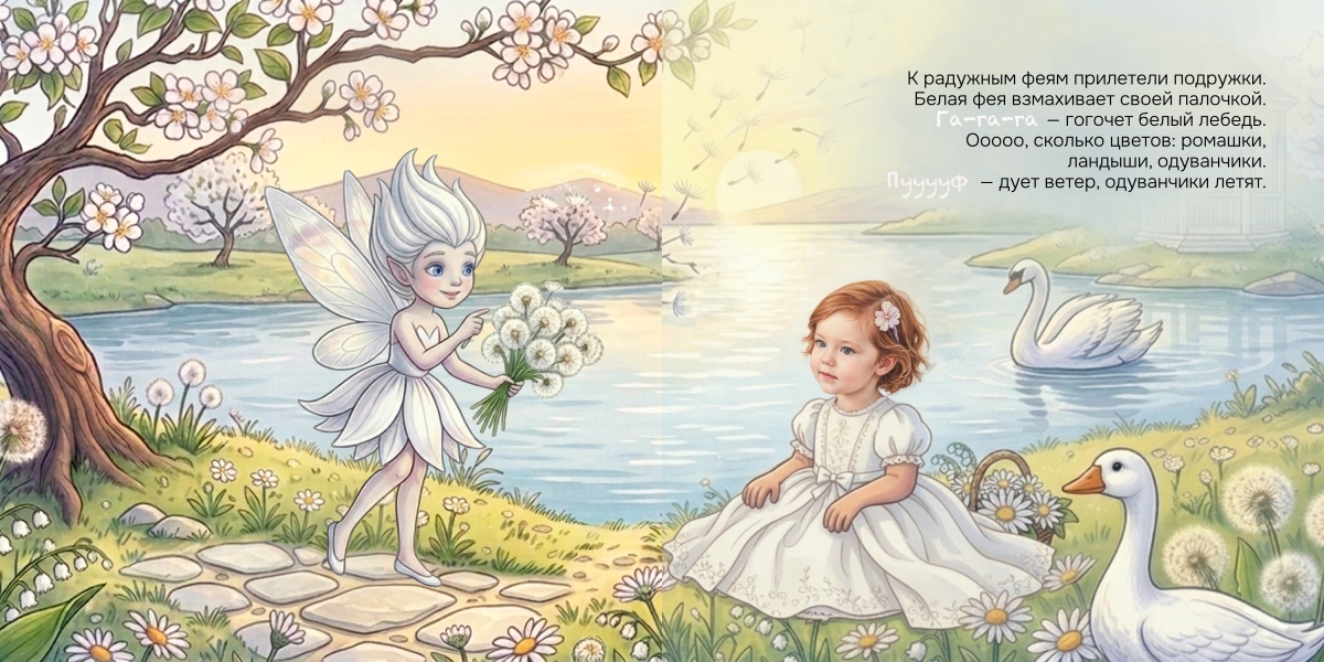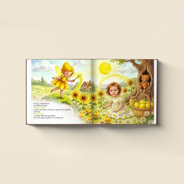 «Феи цветов» — это книга, на страницах которой ты сможешь отправиться в волшебное путешествие на радугу, познакомиться с феями всех цветов, узнать, какого цвета бывают клубника, солнце и даже кит, и в конце сама стать волшебницей, чтобы раскрасить мир так, как захочешь.
