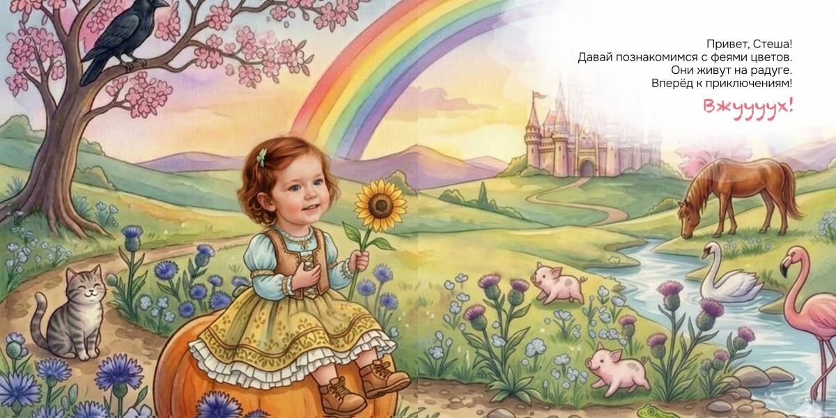 Мы создаем уникальные персонализированные иллюстрации на основе загруженной вами фотографии, а также адаптируем текст с учетом предоставленной информации о ребёнке.