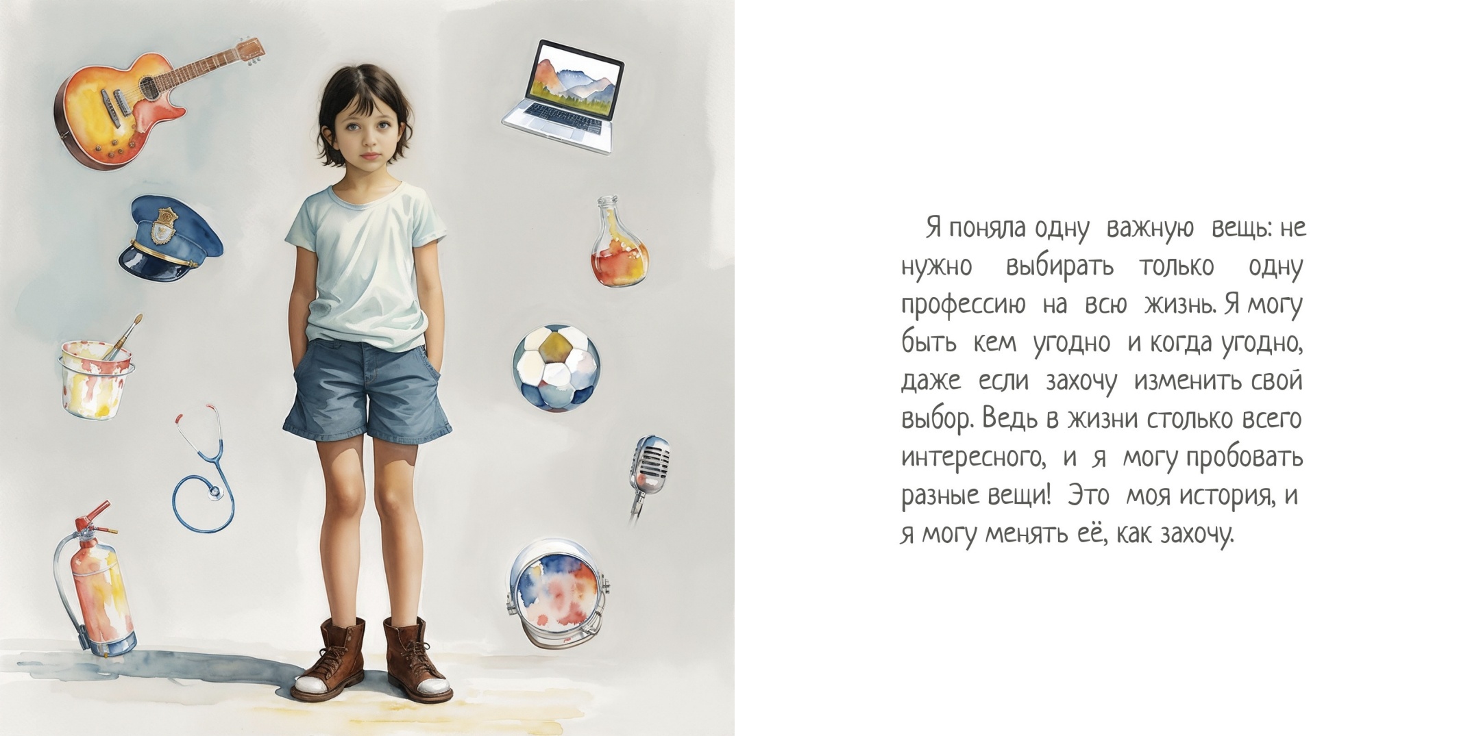 “Кем мечтает стать?” – эта история о том, как ребенок отправляется в мир профессий, примеряя на себя самые разные роли. В каждой новой профессии он находит вдохновение и учится важным жизненным навыкам — заботе, смелости и творческому подходу. Эта книга мотивирует детей исследовать мир и верить в свои мечты.