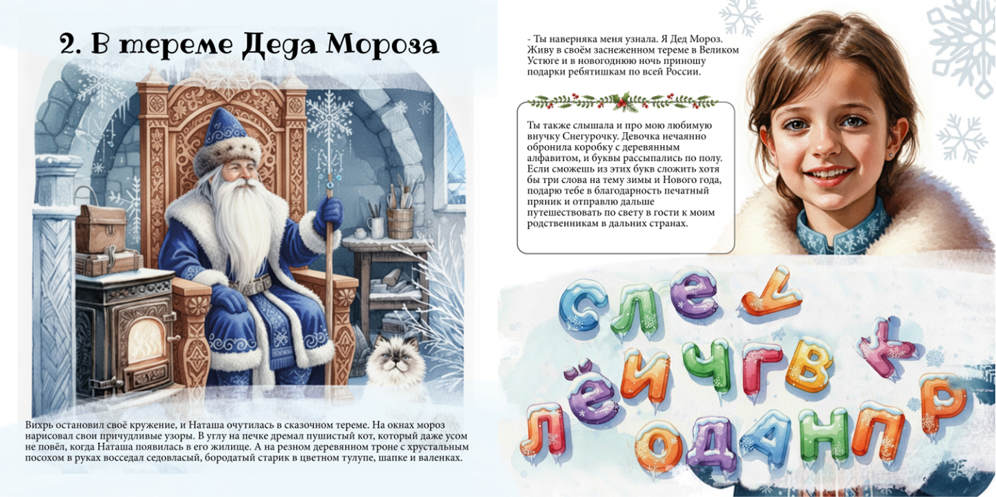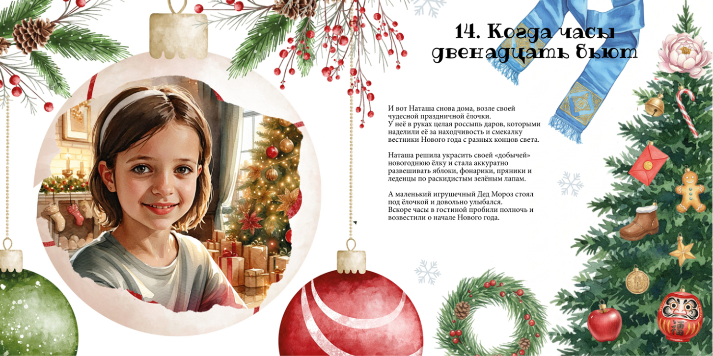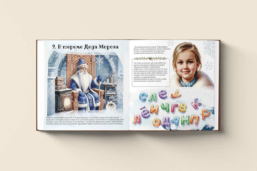 Мы создаем уникальные персонализированные иллюстрации на основе загруженной вами фотографии, а также адаптируем текст с учетом предоставленной информации о ребёнке.