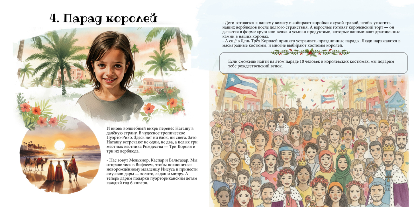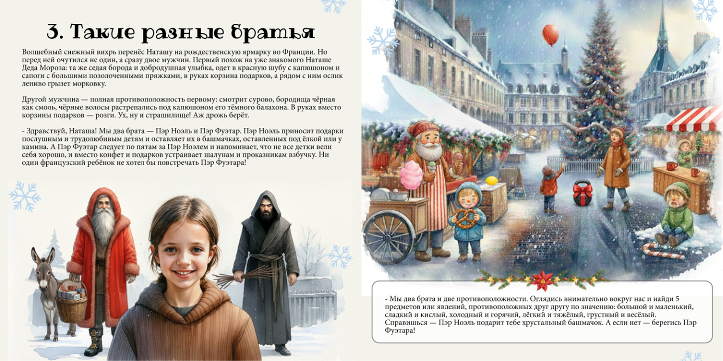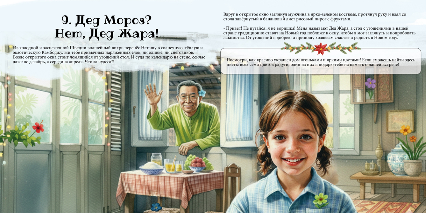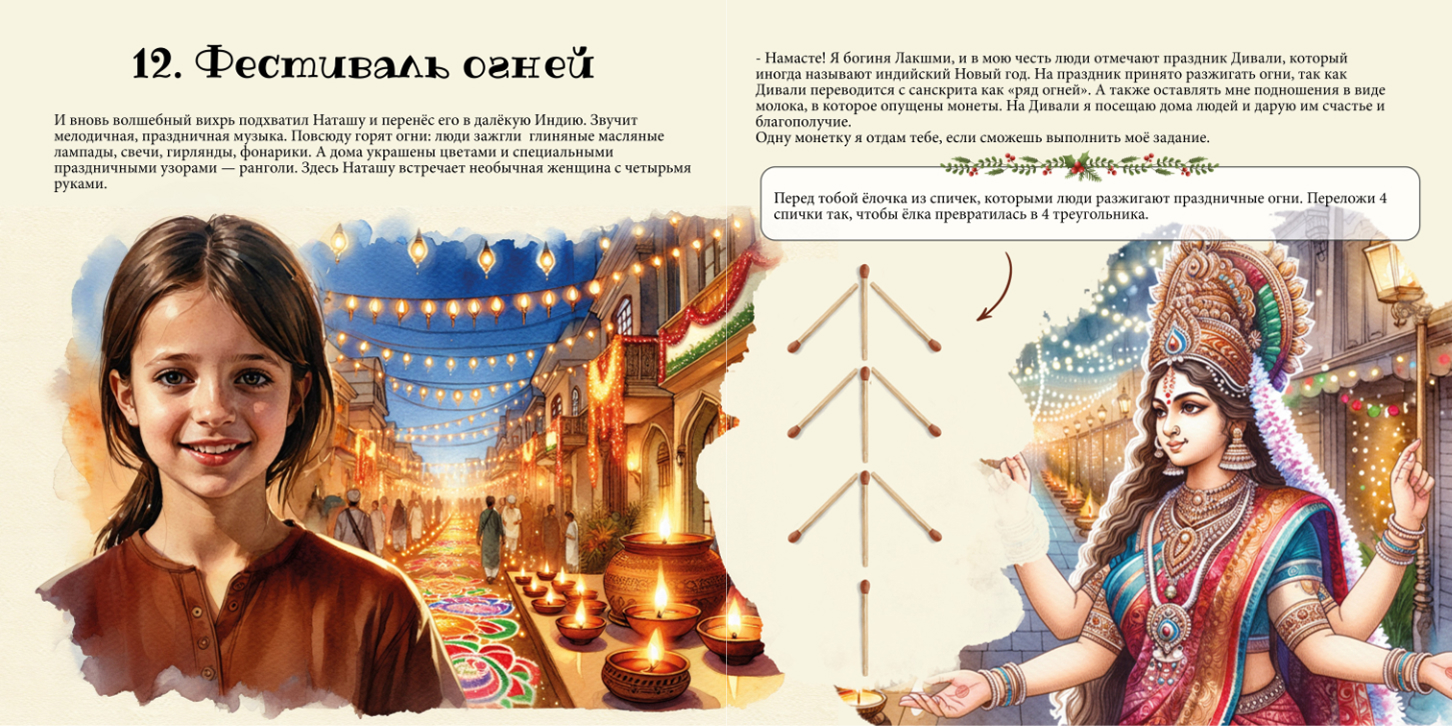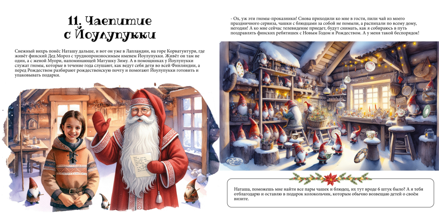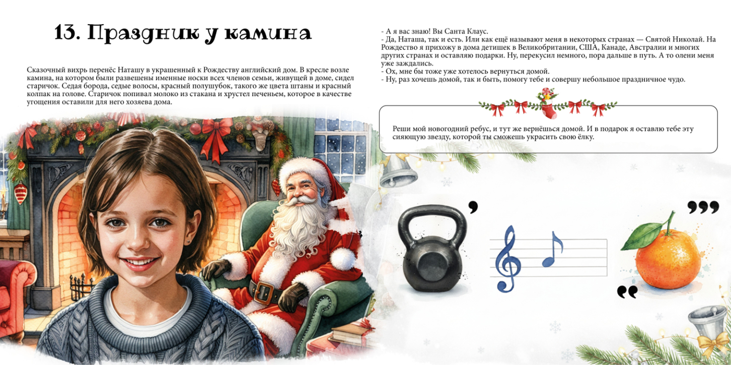 «Новогодняя книга-игра» — это книга, на страницах которой главный герой отправится в волшебное кругосветное путешествие: лично познакомится с зимними волшебниками разных стран, узнет тайну двух французских братьев-морозов, проявит смекалку в загадках сурового монгольского старца и соберет коллекцию уникальных украшений для своей праздничной ёлки.