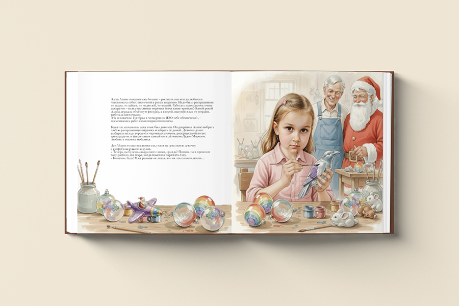 Мы создаем уникальные персонализированные иллюстрации на основе загруженной вами фотографии, а также адаптируем текст с учетом предоставленной информации о ребёнке.