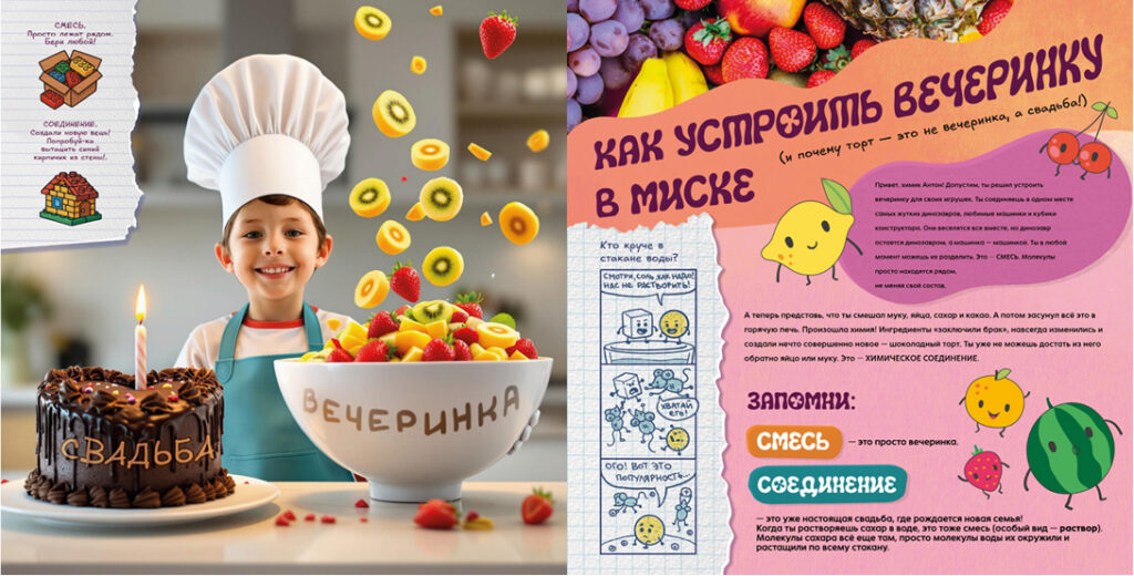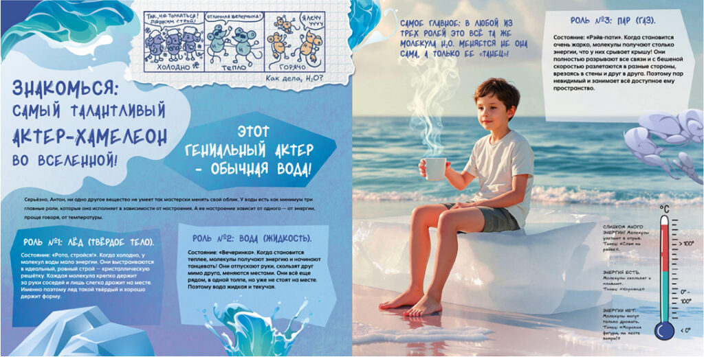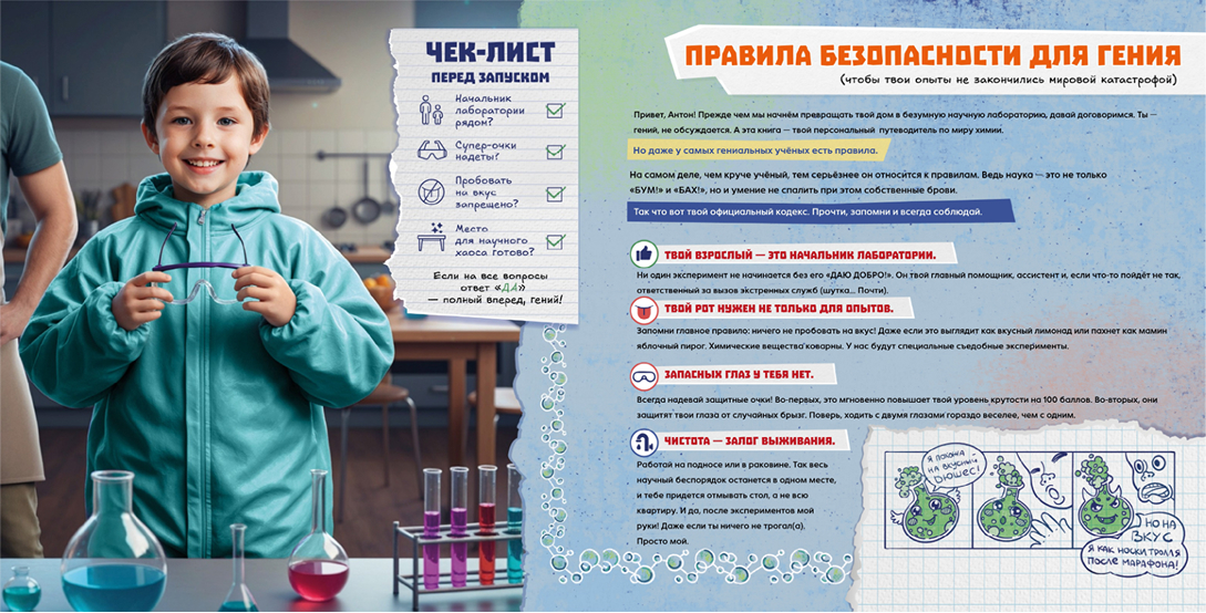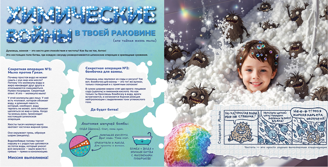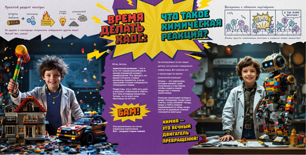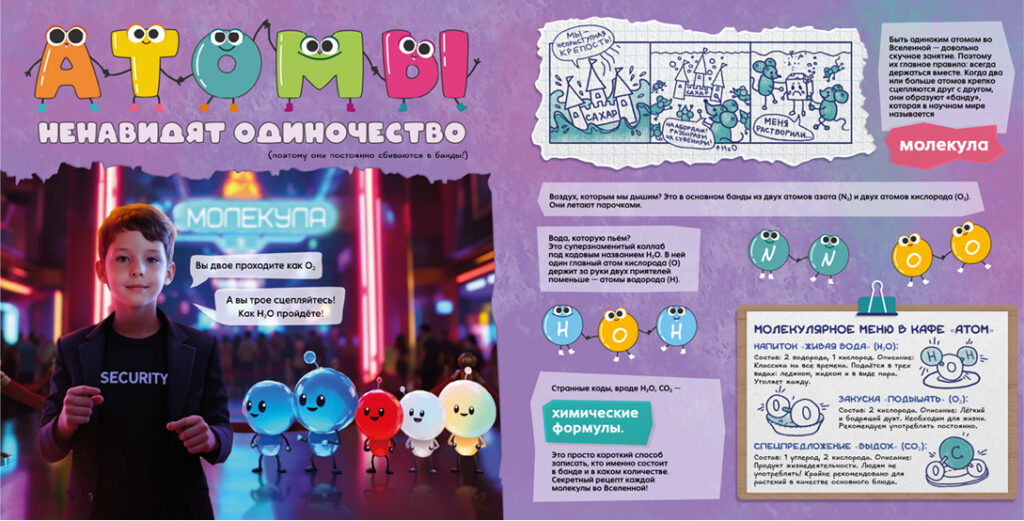 «Тайны Химии» — это эпичные факты, смешные комиксы и безопасные эксперименты, которые расскажут, почему ты состоишь из звёзд, как вода умудряется иметь три личности и как запустить химическую реакцию с помощью лимона.