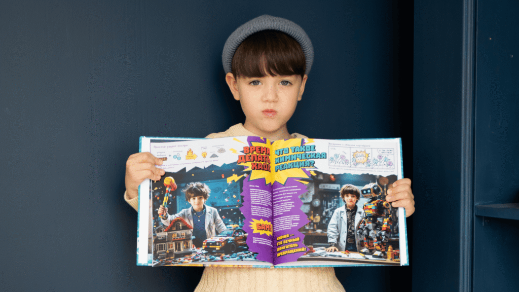 - Ориентация в пространстве. В отличие от бесконечного скроллинга на экране, бумажная книга имеет объем. Ребенок понимает, где начало, середина и конец, что закладывает основы логического мышления.